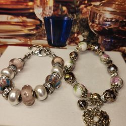 #2378, TWO VENETIAN LAMPWORK GLASS, SILVER PLATED BRACELETS, RARE $129Florence, KY
