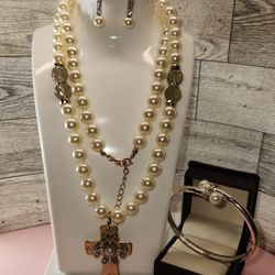 #2092, SIGNED AVON,(jjh) 1965's NECKLACE, BRACELET, EARRINGS, FAUX PEARLS SET, 3 ITEM