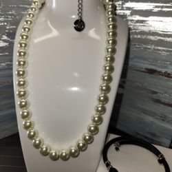 #2023, STATEMENT LOT OF 2 NECKLACES & PEARLS BRACELETS