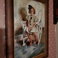 Antique Girl in white rocker oil painting, Signed$75Cincinnati, OH