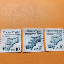 #1738, TRACTOR TRAILER, 1930's usa 10 cents stamp, lot of 3