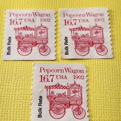 #1741, POPCORN WAGON 1902's 16.7 cents, lot of 3, transportation coil series