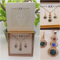Anne klein Set New, With box, 3 Pretty Colors Stones, Red Blue and Green topaz, Vintage Style set,#779