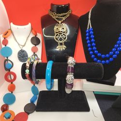 LOT NECKLACES 1 IS LIA SOPHIA, EARRINGS, BRACELET