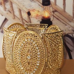 #1869, GORGEOUS FILIGREE VINTAGE BANGLE WITH CRYSTAL STONES,