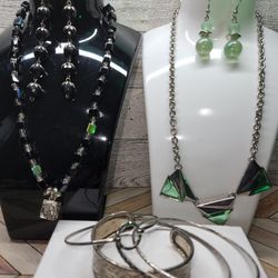 LOT OF VINTAGE COLLECTION, NECKLACE, EARRINGS BRACELET