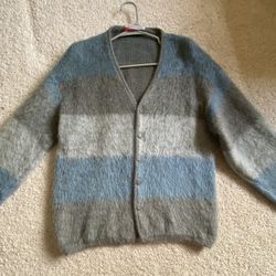 Blue/Grey Horizontal-Stripe Mohair-Wool Cardigan with Grey Buttons$15Cincinnati, OH