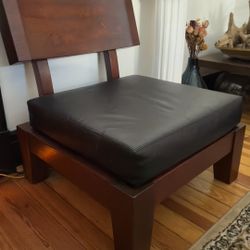 : Pair of Solid Wood Lounge Chairs with Leather Cushion Covers$125Wilder, KY