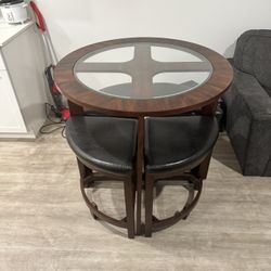 Round glass-top dining table with 4 matching chairs.$130Cincinnati, OH
