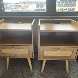 Nightstand set of 2- rattan, wood- charging station$50Cincinnati, OH