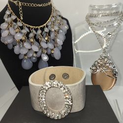 LOT, VINTAGE SET, BEAUTIFUL GRAY AND SILVER TONE, 3 ITEMS
