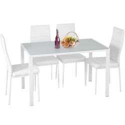 FDW | 7-Piece Dining Table Set | White | Glass Kitchen Table with 4 Upholstered Chairs and Faux Leather Cushions | Space-Saving and Modern Design | fo$120Strongsville, OH
