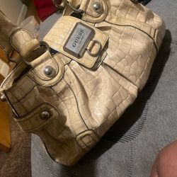 Cream Colored Guess Patent Leather Shoulder Bag with Crocodile Embossed Texture.$200Cleveland, OH