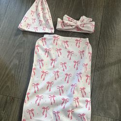 3 pc Baby Swaddle Set Pink Bows$10Cleveland, OH