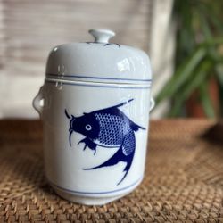 Koi Fish Canister/Blue and White/Glazed Ceramic-Handmade/Asian Decor$37Lorain, OH