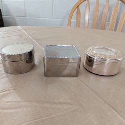 Set of 3 vintage Silver Metal Trinket Boxes With Lids, Round and Rectangle$30Willoughby Hills, OH