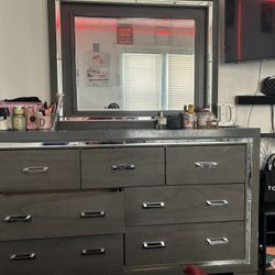 King Wooden Bed Frame And Dresser With Mirror $300Akron, OH
