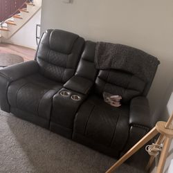Power Reclining Leather Loveseat w/ Console & Cup Holders Like new, Can drop off with delivery fee.$350Westlake, OH