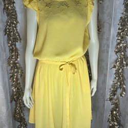 LOFT Yellow Lace Yoke Fit Flare Dress Med Flutter Sleeve Pockets Easter Spring$37Avon Lake, OH