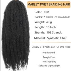 7 Packs Marley Twist Braiding Hair 16 Inch Marley Twist Hair Long Black Marley Hair for Faux Locs Afro Twist Hair Extensions(1B#, 16INCH(pack of 7))$50Columbus, OH