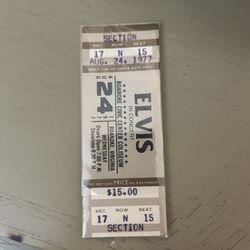 Elvis Concert Ticket From Aug., 24, 1977$350Circleville, OH