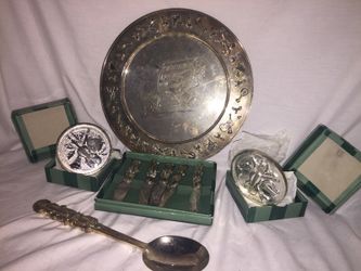 Silver Godinger platter with spoon cheese knife and coasters$50Dublin, OH