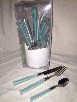 Utensil caddy 24 piece set 8 forks 8 knives 8 spoons$30Dublin, OH
