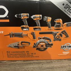 Brand New Unopened RIDGID18V Cordless 8-Tool Combo Kit with 2.0 Ah Battery, 4.0 Ah Battery, Charger, and Tool Bag$475Delaware, OH