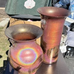 2 Large Coral Iridescent Glass Vases$25Grove City, OH