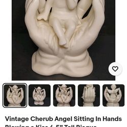 Vintage Cherub Angel Sitting In Hands Blowing a Kiss 4.5” Tall Bisque firm price $13 bucks pick up only 865 Ellsworth Ave right off of East Livingst$13Columbus, OH