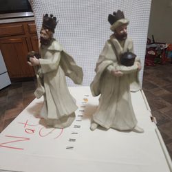 Vintage white Kings 10 cm artist Thomas Kinkade Nativity Maplewood oil painted hand carved standing canes statues with the cape and holding a chest an$65Columbus, OH