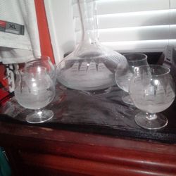 Antique echted liquor bottle and four matching glasses$100Columbus, OH