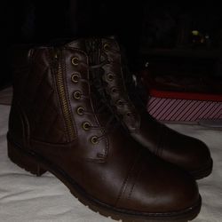 This is a pair of Vepose women's brown faux leather combat ankle boots with a quilted side panel, lace-up front, and side zipper closur$40Columbus, OH