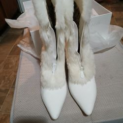 A S H R O White Faux Fur Mid Calf Boots Pump Zipper In Front Size 10 M$35Columbus, OH
