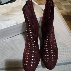 A S H R O Wine Color Studded Zips On Side Pumps Half Calf Size 10 M Excellent Condition$25Columbus, OH