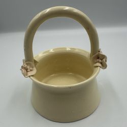 Small Handmade Ceramic Basket Planter Cream Floral Handle Decorative Pot$10Columbus, OH