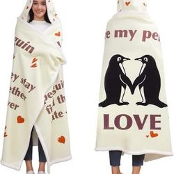 Anniversary Romantic Blanket Hoodie – Penguin Love Design (Soft Sherpa Fleece)$18Columbus, OH
