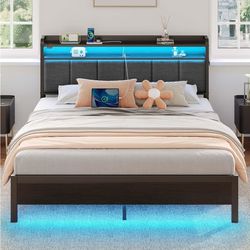 🔥*READ* KING Size Frame with Charging Station and LED Lights, Upholstered Headboard with Storage$100Columbus, OH