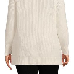 Lands' End Women's Plus Size Drifter Shaker Easy Fit Mock Neck Tunic Sweater - 3X - Fresh Ivory