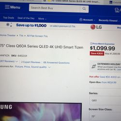 Samsung Q60T 65 Inch Smart TV QLED $899Columbus, OH