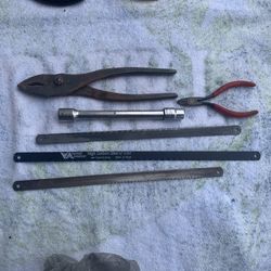 Hand tool lot, pliers, blades, socket extension$5Centerville, OH
