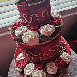 $45.00 - (3) Gorgeous & Elegant, Victorian Style Keepsake Boxes! Silk Roses/Velvet Fabric/Stackable! $45Morrow, OH