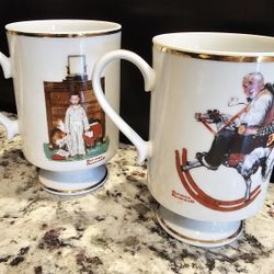$25.00 - 1981 Elegant Norman Rockwell Mug 2pc Set! Pedestal Base/Gold Rims Accents On Rims/Handle/Base! Like New!$25Morrow, OH
