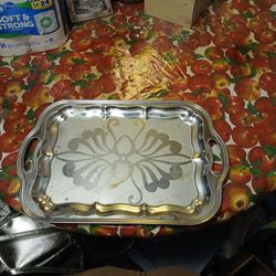 Vintage Stainless Steel Metal Serving Tray With Beautiful Design In The Middle $25Huber Heights, OH