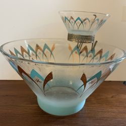 Mid century chip & dip bowl set. Aqua and gold Atomic pattern$40Springfield, OH