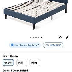 Zinus Upholstered Queen Bed Frame Blue Color. No Box Spring Needed$120Sugarcrk Township, OH