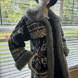 $25.00 - Women's Longline Cardigan with Fur Accents, STYLE & CO Brand! Size: (M)/Black, Grey & Cream Colors/Gorgeous Design/Like New Condition!$25Morrow, OH