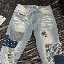 Navy and white patchwork jeans with a distressed finish #patchworkjeans$35Dayton, OH