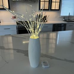 11 Inch White Ceramic Waterfall Textured Flower Vase with Lighted White LED Twig Branches with Timer$35Sugarcrk Township, OH