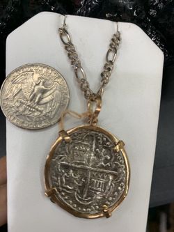 Atocha silver coin pendant in gold bezel with silver chain$299West Carrollton, OH